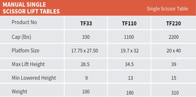 Noblelift Manual Single Scissor Lift Table 330-2200lbs 150 to 1000KG
